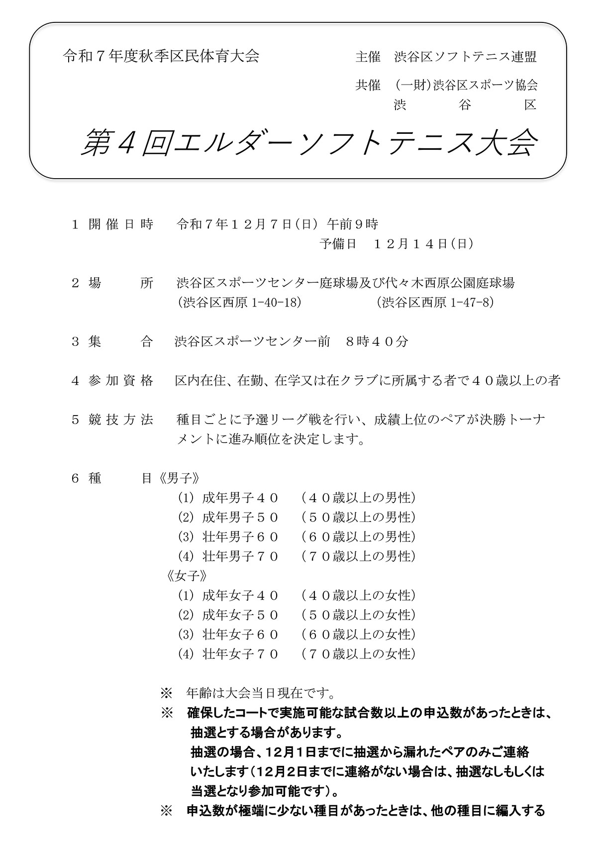 2025年10月24日2025年10月24日 shibuya-sta-adplayers ▼申込フォーム:https://forms.gle/9hK8ZwtQMrLCWUks8 2025_エルダー大会ー要項(PDF) 2025_エルダー大会ー申込書(PDF) 2025_エルダー大会ー申込書(Excel)