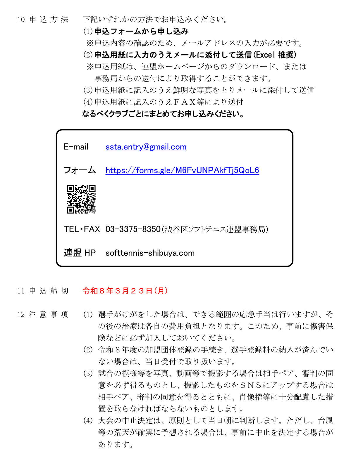 • 令和8年度 第66回渋谷区民春季ソフトテニス大会個人戦 要項